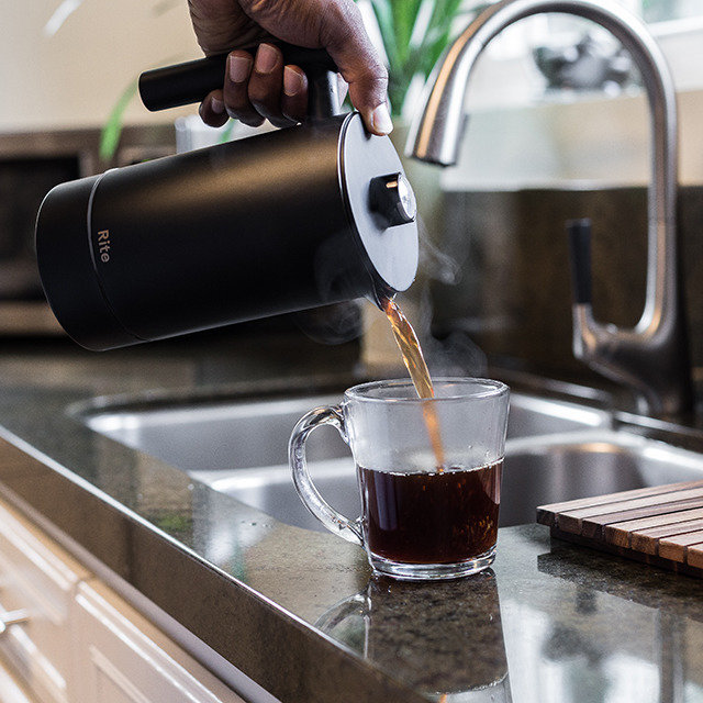 French presses are extremely simple: measure out your coffee grounds, add hot water, and let steep for the correct amount of time. Then press the plunger to remove the grounds from your coffee. The only difficult part of traditional French presses is the cleanup, which is notoriously annoying. The grounds (or leaves, if you’re making tea) are stuck in a wet clump at the bottom. That’s why we invented the Rite Press—our patented bottom unscrews for easy cleanup.